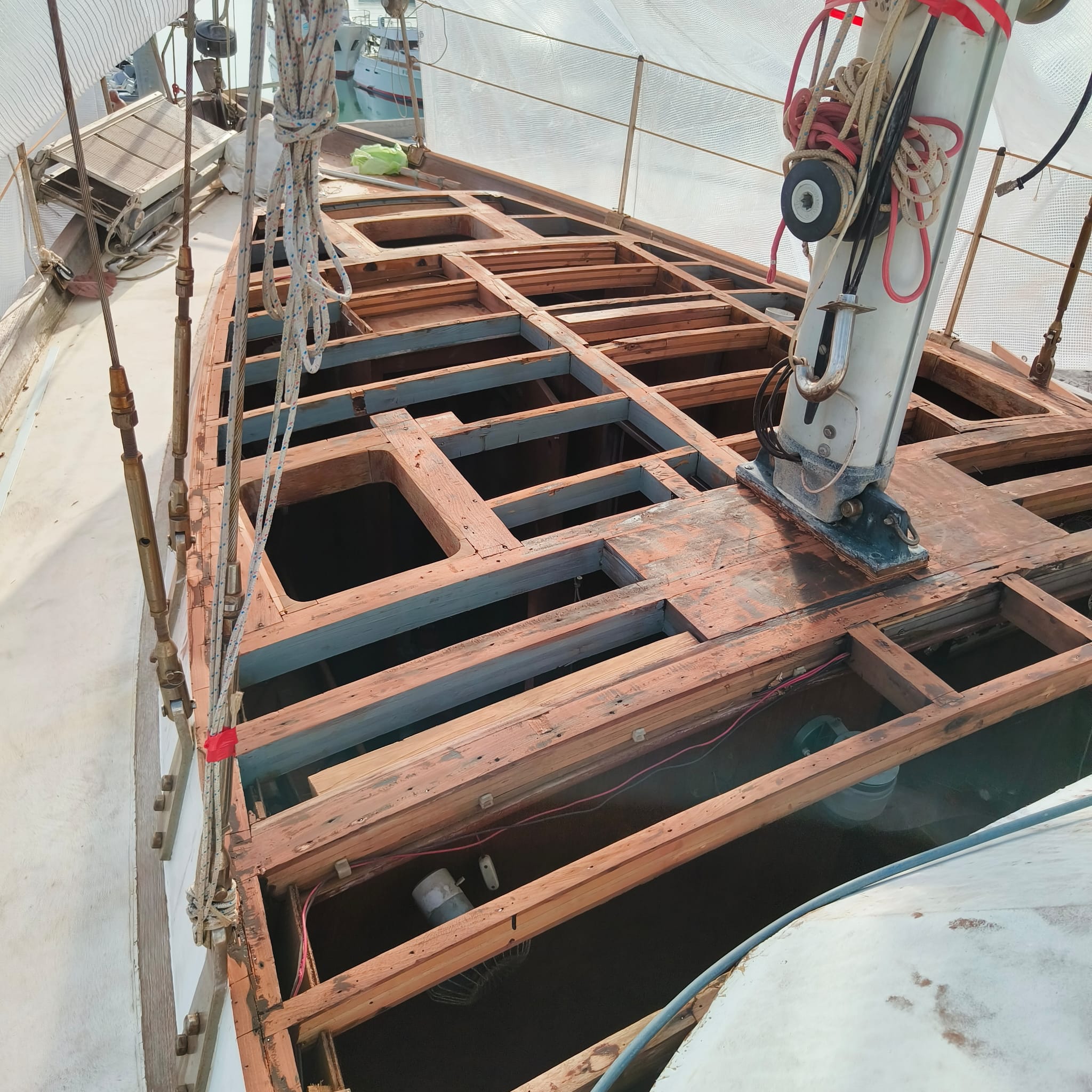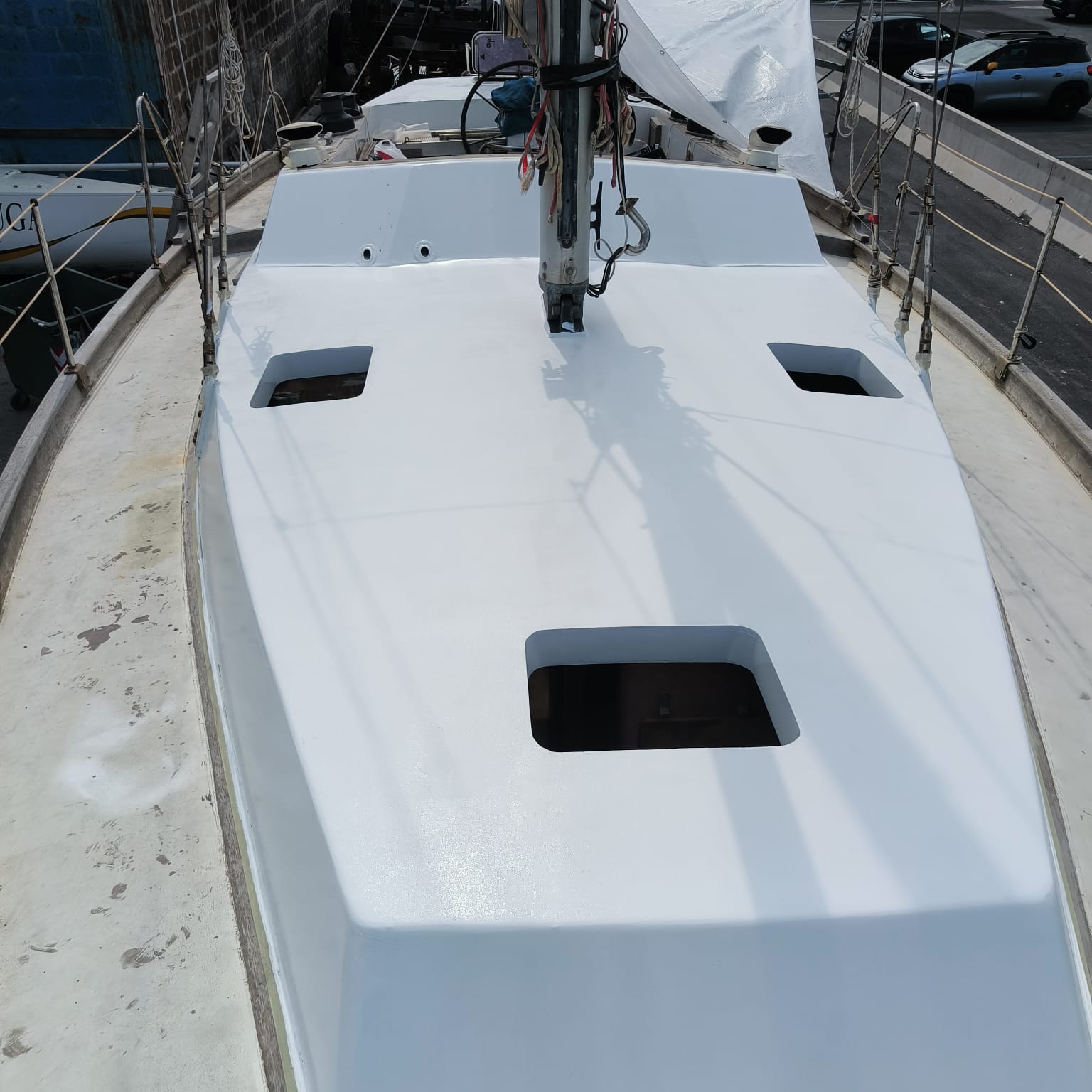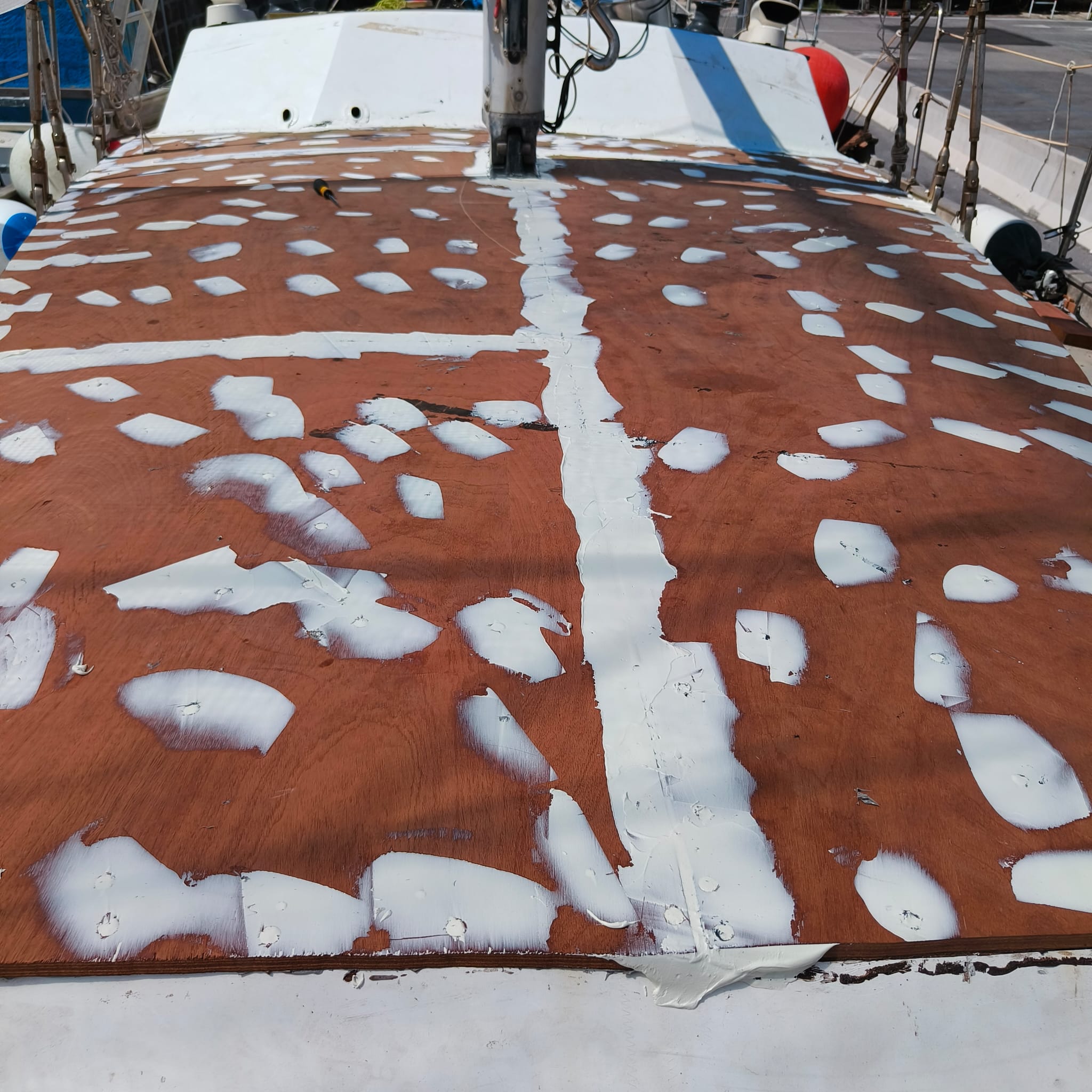 Rifacimento in compensato di mogano tuga più pitturazione